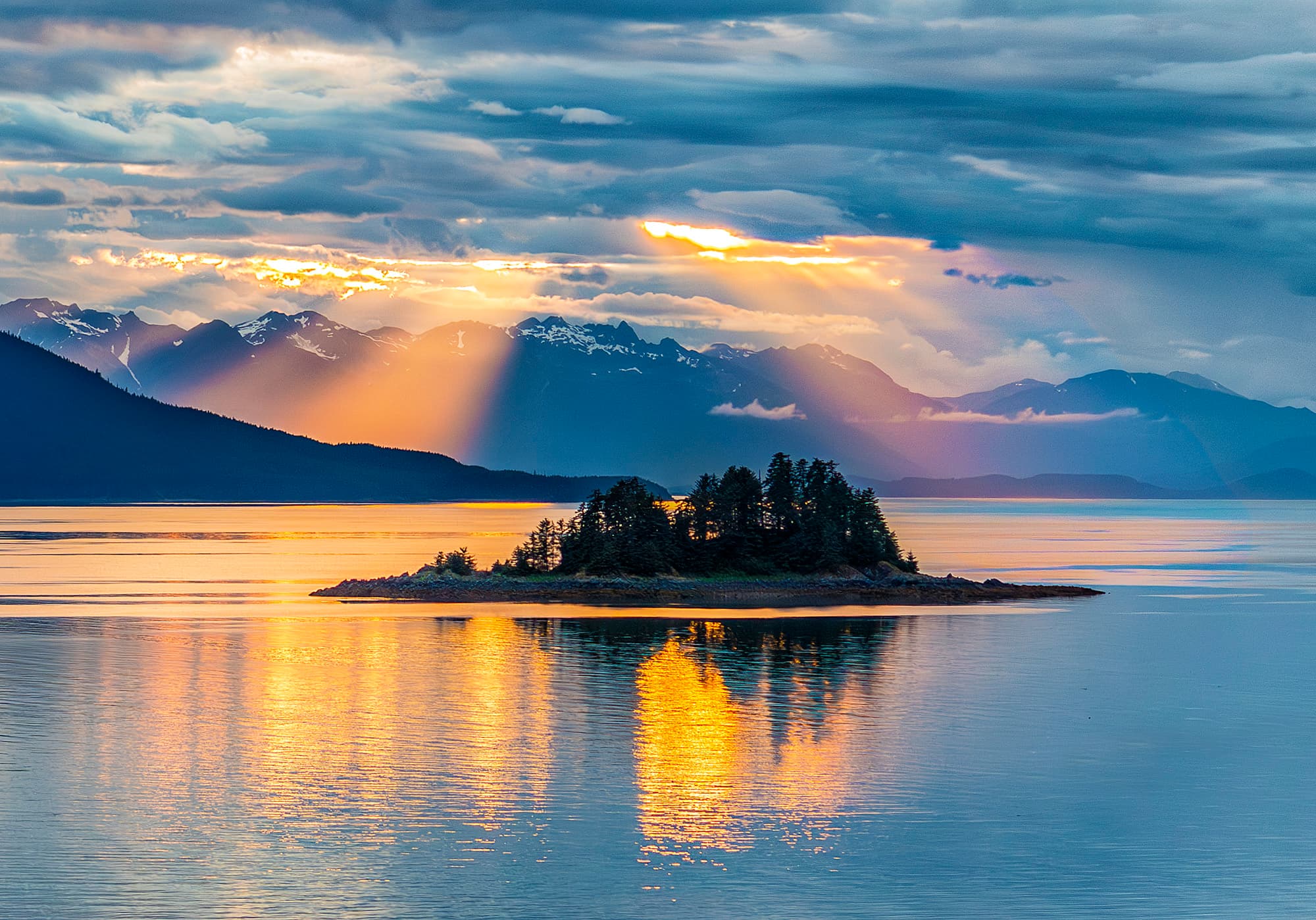 “God Light” spills through the clouds over the Chilkat Range and Cohen Island. This image was taken from the pullout at Tee Harbor along the Juneau road system. The other good roadside pullouts just north of The Shrine of St Therese are my go-to spots when the light is getting God-like. The only problem is the trees are growing up and obscuring the view. I wish Juneau could find a way to clear the pullout views. This image is featured in September of my 2025 Juneau Alaska Calendar, available online at markkelley.com and in your Juneau stores. I will be at the Public Market signing calendars Nov 29-through December 1. Thank you for visiting and for the gift of your time, enjoy! Camera Nikon D850, Lens 24-70mm, Digital Capture, ©Mark Kelley