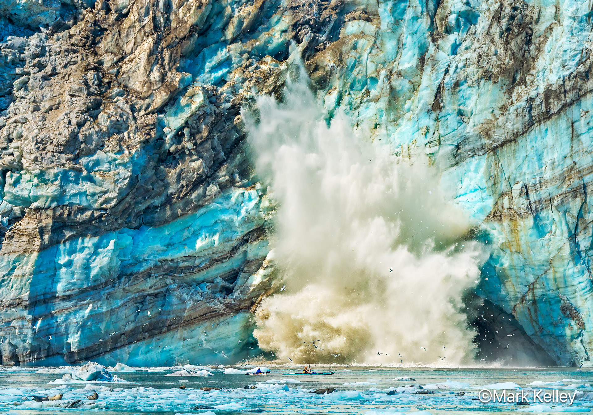 The 2027 Alaska calendar cover features a calving glacier in Glacier Bay. When I shot this image I did not realize that there were two kayakers and lots of seals hanging out in front of Johns Hopkins Glacier, look closely! On the inside enjoy images of the northern lights in the Arctic, a coastal brown bear on Chichagof, puffins in the Pribilofs, and more! One of my favorite images is of mountain goats hiding out above Steller sea lions on Gloomy Knob in Glacier Bay, imagine coming upon a scene like that with two very different species of wildlife in one shot!