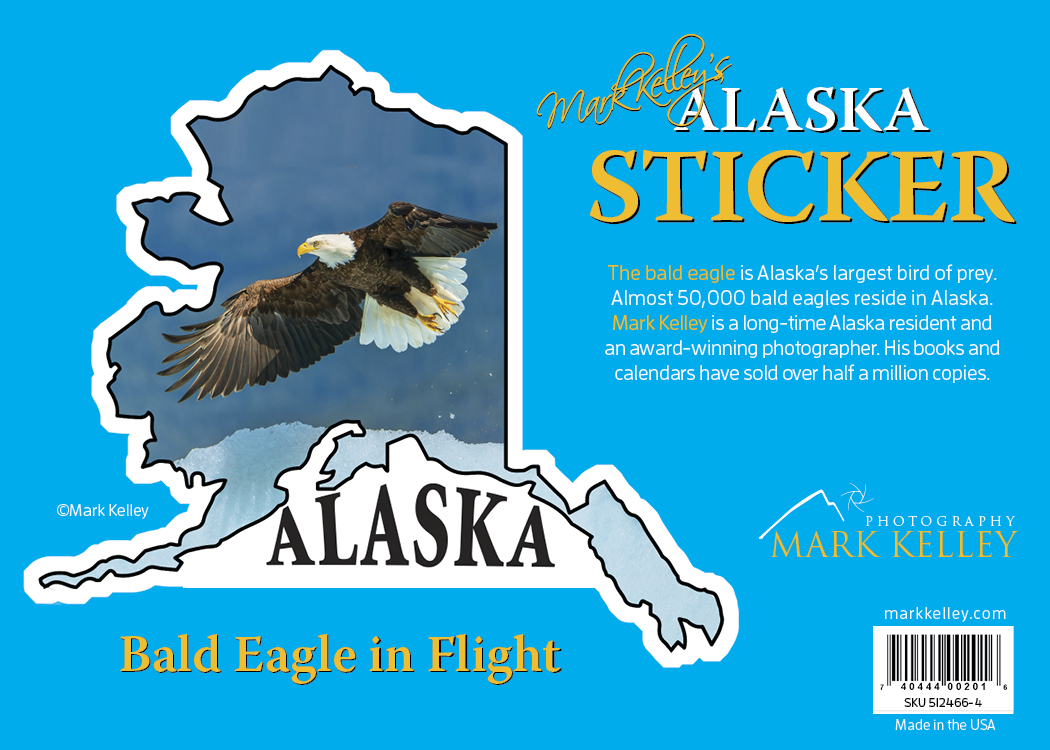 An original State of Alaska Photo Sticker! A beautiful Mark Kelley photo in a cut-out of the state of Alaska.