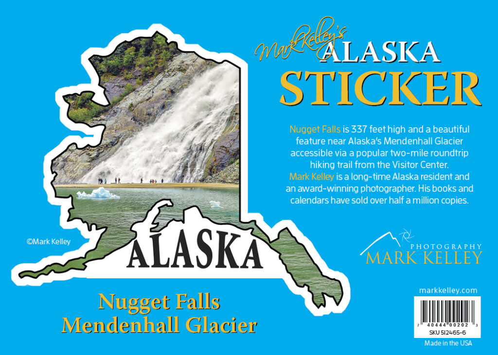An original State of Alaska Photo Sticker! A beautiful Mark Kelley photo in a cut-out of the state of Alaska.